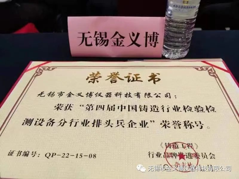 衷心祝賀無錫市金義博儀器科技有限公司榮獲“第四屆中國鑄造行業檢驗檢測設備分行業排頭兵企業”榮譽稱號!